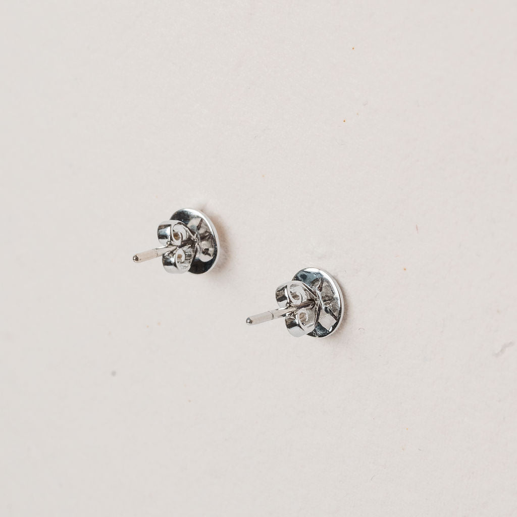 - Martini setting with added platinum or gold button to avoid ear hole stretch