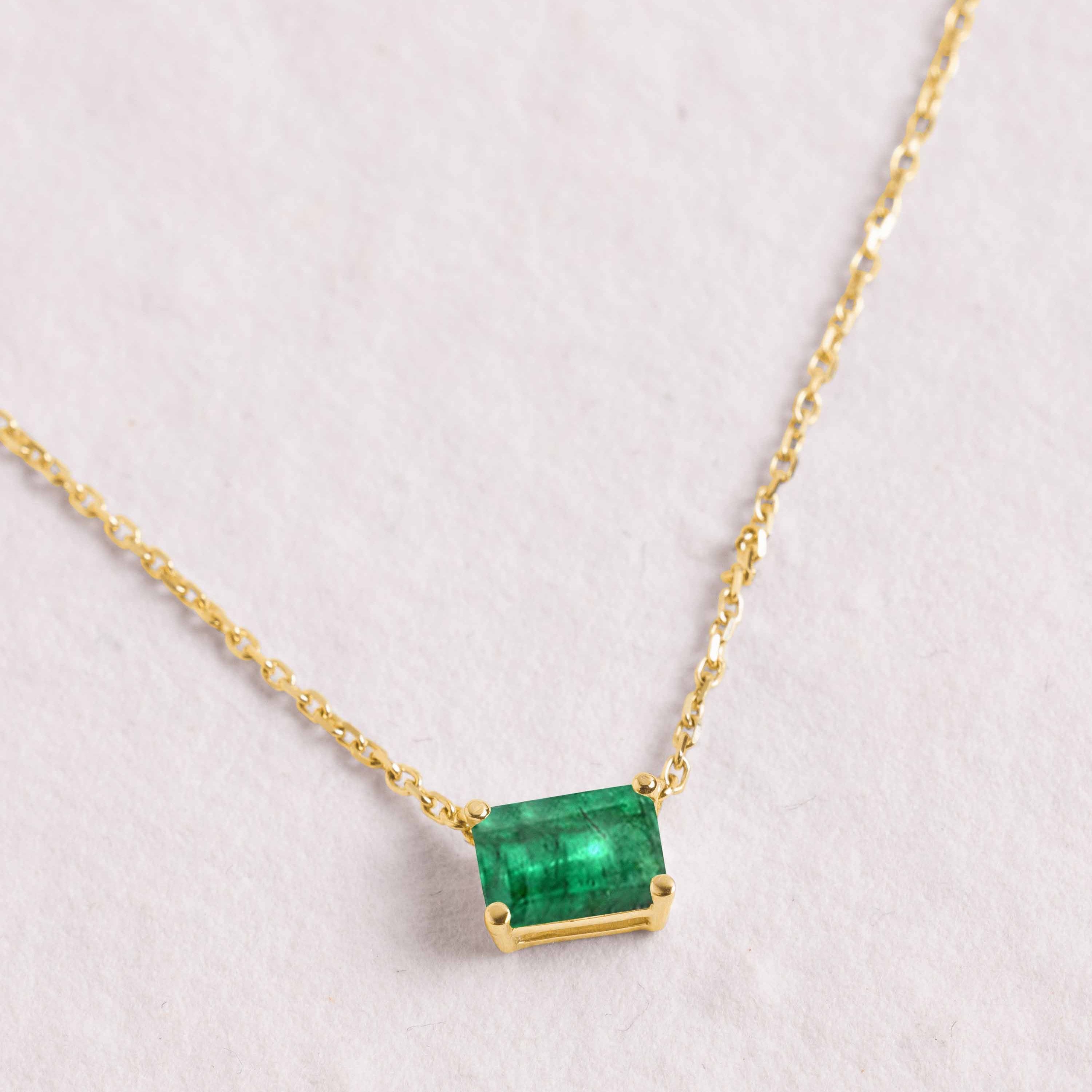 THE KENSINGTON LAB-GROWN EMERALD SOLITAIRE NECKLACE, SET IN PLATINUM OR 18K GOLD BY J ROCKS LONDON