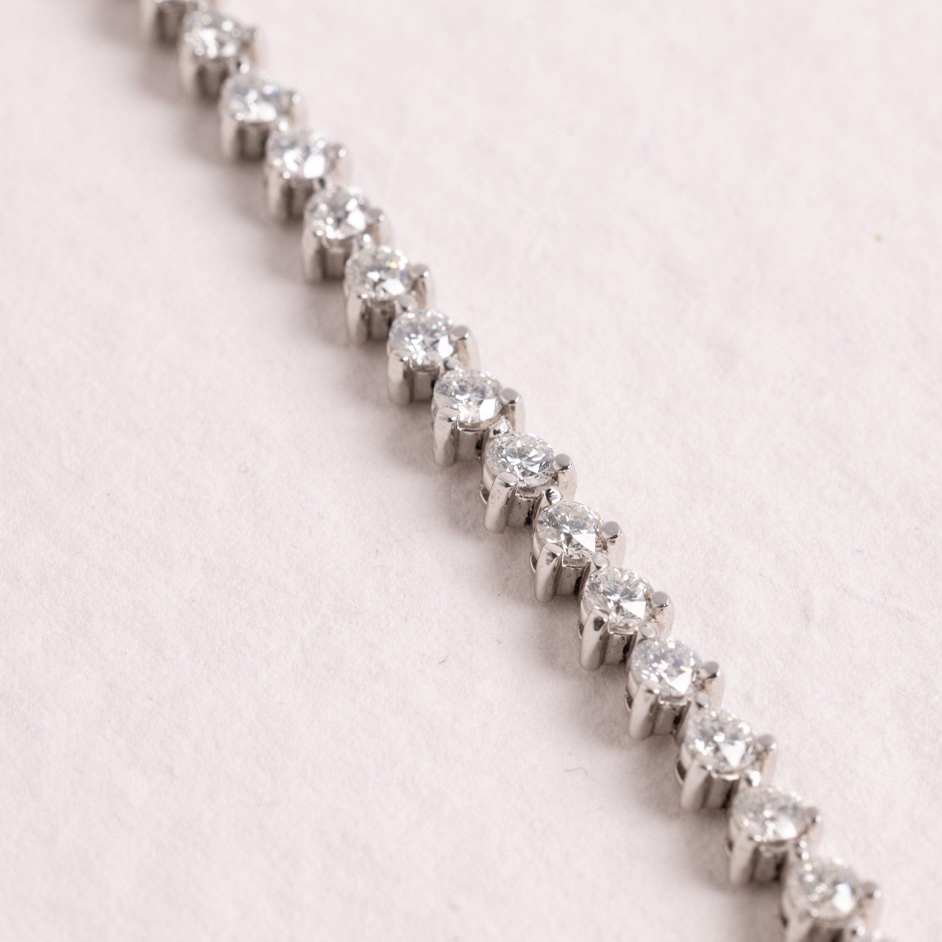 This 6ct Wimbledon Tennis Bracelet exudes elegance and sophistication. It features 6 carats of lab-grown VS colourless diamonds, each securely set in a refined three-claw setting, and is crafted from platinum or 18k gold. Available in custom lengths of 16, 17, 18, and 19 cm. Perfect for everyday wear or special occasions, this bracelet can be worn alone or stacked with other pieces for a more dramatic effect.