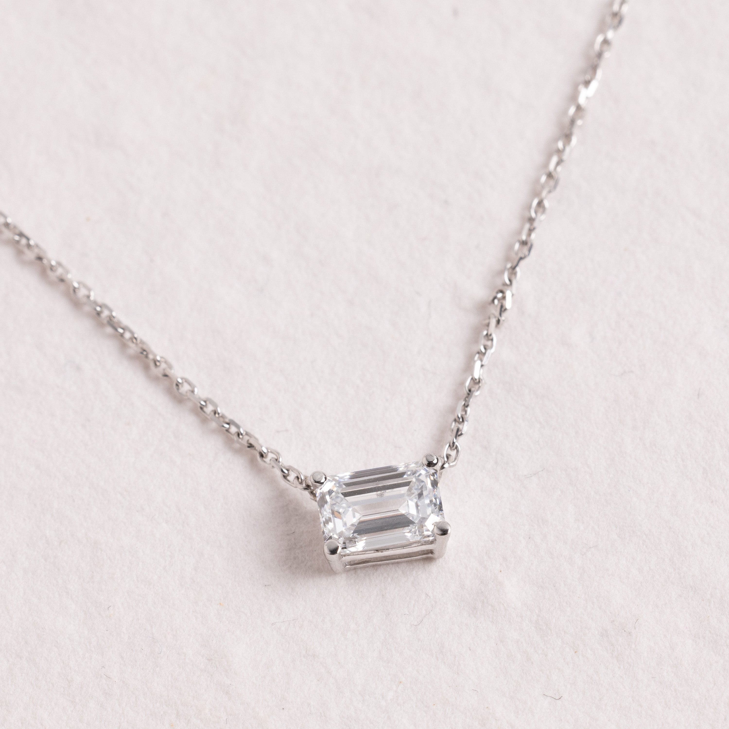 THE KENSINGTON LAB-GROWN EMERALD CUT DIAMOND SOLITAIRE NECKLACE, SET IN PLATINUM OR 18K GOLD BY J ROCKS LONDON
