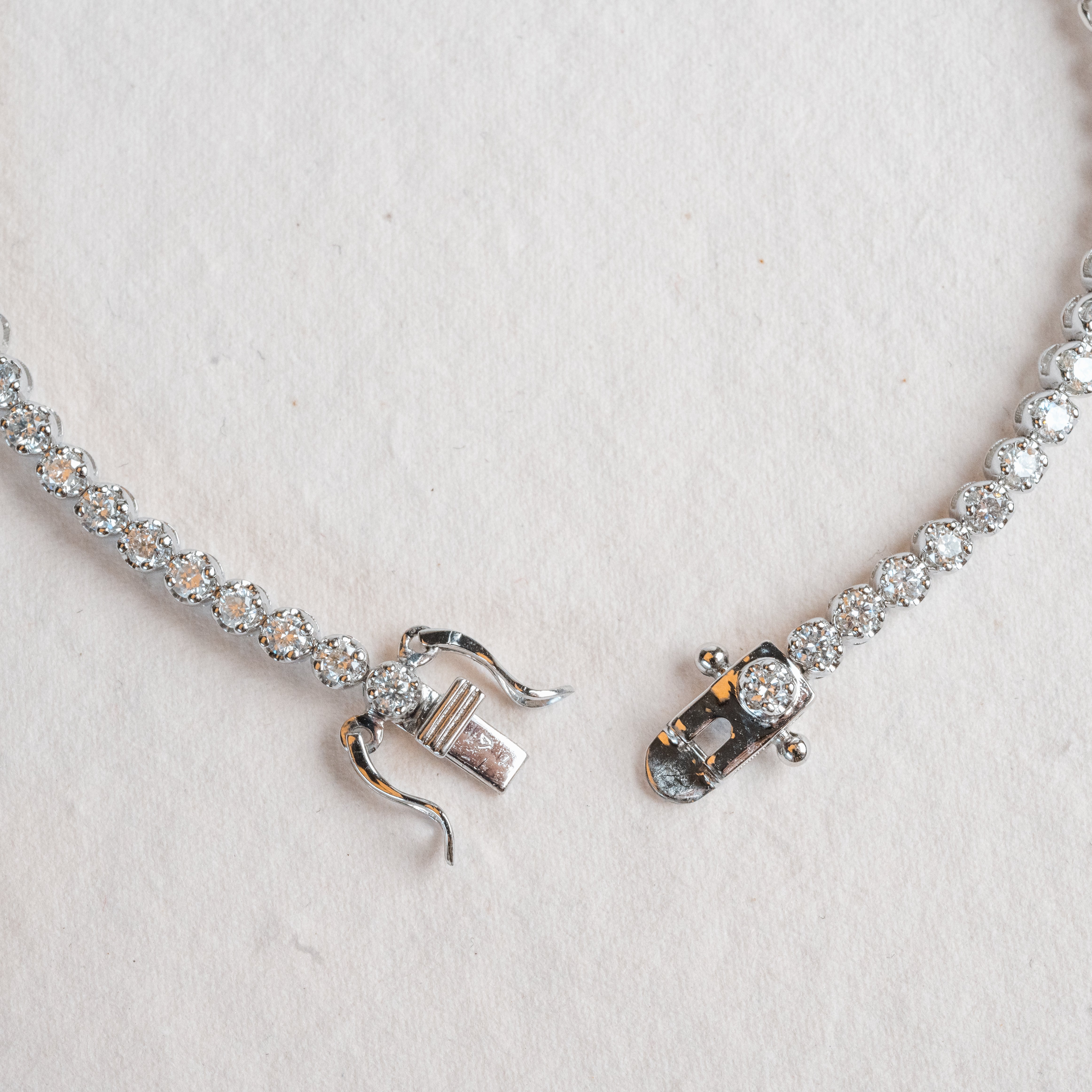 This 2ct Wimbledon Tennis Bracelet is a perfect for everyday wear. It features 2 carats of lab-grown VS colourless diamonds, each set in a secure four-claw setting, and is crafted in platinum. Available in custom lengths of 16cm, 17cm, 18cm, 19cm. Wear alone, stack or pair with your watch for a little touch of luxury.